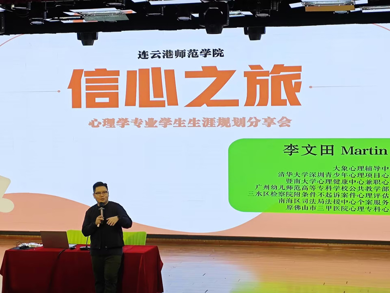作为广东省佛山市三水区首家正式注册的专业心理辅导机构“大象心理辅导中心”创办人及首席心理咨询师,李文田以广东省心理骨干警员心理团体教学活动分享为切入点,从公务员、社区心理医生、执业心理咨询师等心理咨询专业相关岗位分别需要什么就业资质讲起,围绕学历提升、专业证书考取、职业选择几个方面进行讲解,逐步引导学生如何打开就业思路,从国家政策导向与社会需求、行业市场趋势分析、岗位深度探索、创业四个维度,指导学生科学构建就业思路。通过细致解读心理咨询工作室的创业宣传和生存策略,围绕心理咨询的核心需求,将就业理想转化为可落地的实践方法,帮助学生树立与国家需求同频共振的就业观,从而明晰个人职业发展方向。
