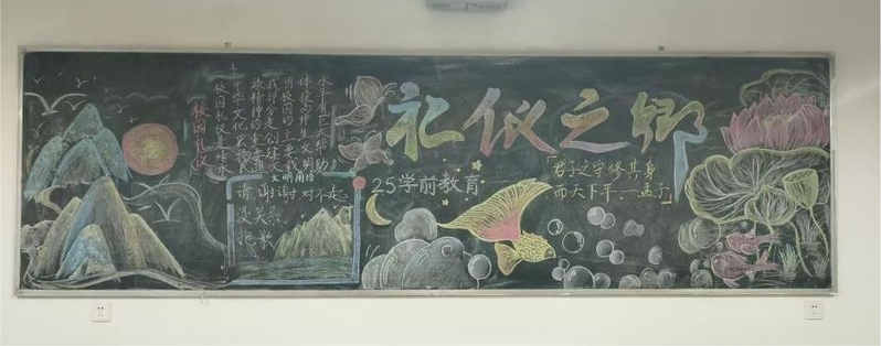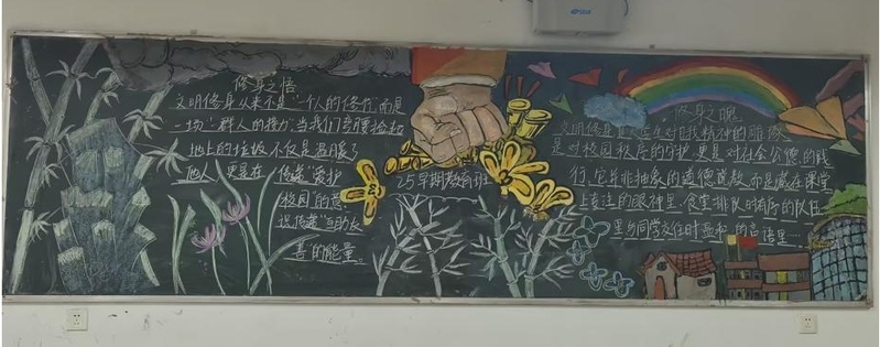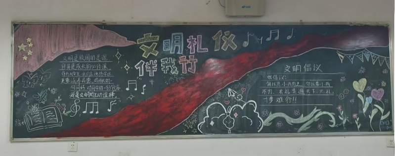 活动启动以来,各班级围绕“文明礼仪”“校园新风”“品德修养”“责任担当”等核心主题,充分发挥想象力与创造力。同学们分工协作,从版面设计、内容编排到色彩搭配、图文绘制,每一个细节都凝聚着集体智慧:有的以漫画形式展现日常文明行为,生动有趣;有的摘录经典名言、文明公约,传递精神力量;有的结合校园生活实例,倡导勤俭节约、友爱互助的良好风尚。一块块主题鲜明、版式新颖的黑板报,不仅美化了班级环境,更成为传播文明理念、弘扬正能量的重要阵地。