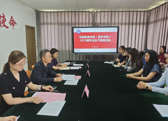 6月18日上午,学前教育学院(音乐学院)在智贤楼D410会议室召开2025届毕业生代表座谈会。学院党总支书记嵇仙峰,副书记付艳、尹菲,学生党支部书记、学生工作办公室主任,分团委书记与22名毕业生代表齐聚一堂,共话成长与未来。座谈会由尹菲主持。