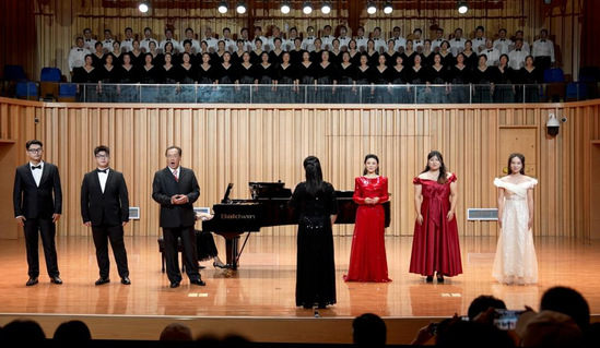 讲座中,王立民深入浅出地讲解了歌剧的起源、发展以及歌剧演唱技巧,针对不同风格作品的演唱特点进行了现场授课,学生代表先后上台演唱《你不要哭泣》《凤求凰》《梦梦》等中外艺术歌曲,针对学生的发音、气息和情感表达等演唱技法,王立民耐心细致地指导、生动地示范,使学生的演唱水平得到了提升。此外,王立民带领学院4名音乐专业学生,在连云港大剧院音乐厅同台演唱作品《共和国之恋》,学院组织近200名音乐专业师生观摩本场音乐会。