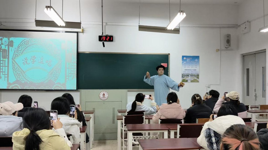 为推动理论宣讲“走新”更“走心”,宣讲团立足学院学科优势,创新融合“宣讲+文艺”的形式,将理论学习与艺术表达有机结合。11月26日,学院音乐表演专业学生带来吉他弹唱表演,对《这世界有那么多人》《虫儿飞》等歌曲进行歌词改编,以音乐为载体传递时代主题;12月1日则以传统快板汇编形式演绎党的二十届四中全会精神。两场文艺宣讲巧妙融入新时代发展内容,围绕全面实施“全面实施‘人工智能+’行动”“发展医育、医养结合服务”“高质量发展”“共同富裕”“办好人民满意的教育”等重点议题,将政策理论与学生实际相结合,实现艺术表达与思想引领的同频共振。