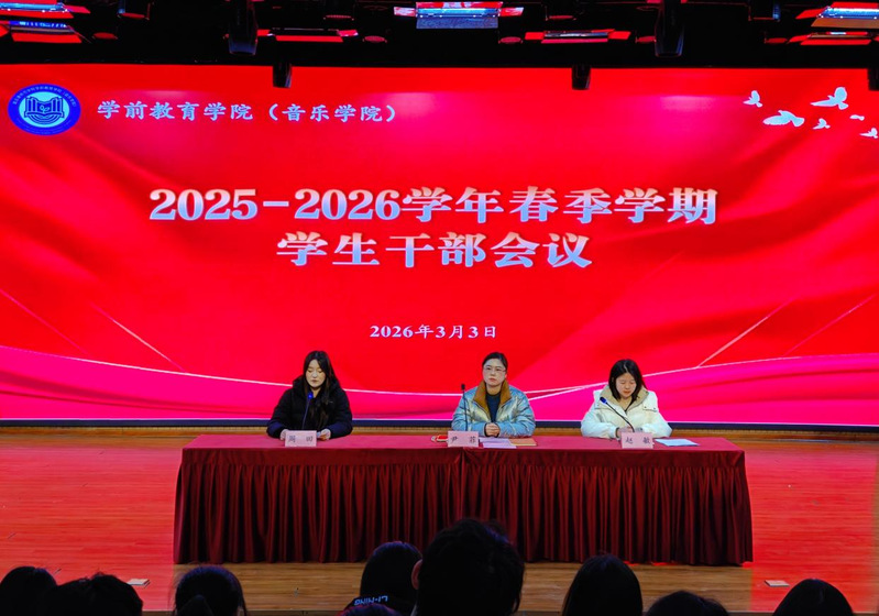 3月3日,学前教育学院(音乐学院)于智贤剧场召开新学期学生干部会议。学院党总支副书记尹菲,学院各班级全体班委、团支部委员以及学生会主要学生干部参加会议。会议由学生发展中心主任赵敏主持。