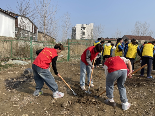 春风拂沃野,植绿正当时。在第48个植树节与学雷锋志愿服务月交汇之际,学前教育学院(音乐学院)学生党支部组织学生党员、入党积极分子及智贤实践小分队的志愿者走进赣榆小荒村党群服务中心,开展“‘植’此青绿,共‘树’未来”义务植树活动,以实际行动为乡村振兴增绿添彩。