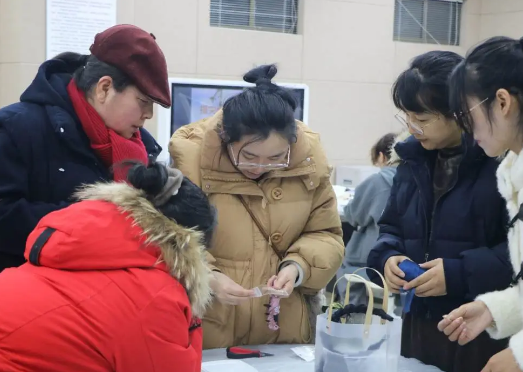 参与活动的女教职工们兴致盎然、全情投入,精心挑选材料,大胆构思造型,相互交流创意,分享制作心得,指尖翻飞间尽显巧思与温情。大家将对生活的热爱、对事业的热忱融入创作,一件件精致典雅、风格各异的手工头饰陆续成型,或温婉清新,或明艳大气,既承载着节日的美好祝福,更彰显出新时代女性自信从容、积极向上的精神风貌。