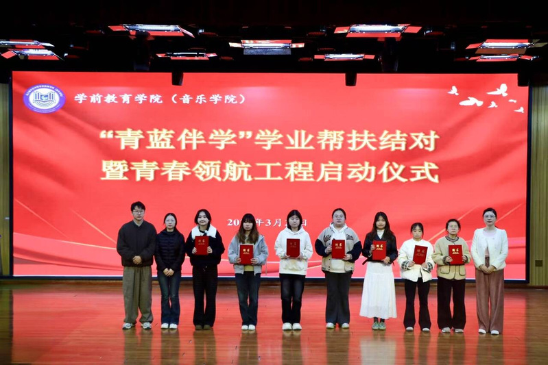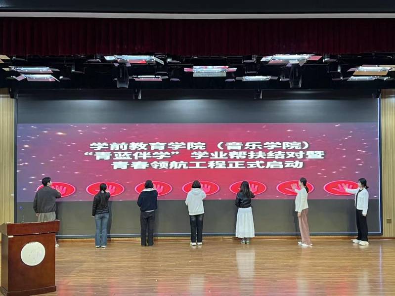 3月27日,学前教育学院(音乐学院)在智贤剧场举行“青蓝伴学”学业帮扶结对暨青春领航工程启动仪式。学院党总支副书记尹菲出席仪式并作动员讲话,学生党支部书记崔梦君、学生发展中心主任赵敏、分团委书记夏爽,以及青蓝导师、新生班级学生代表参加仪式。
