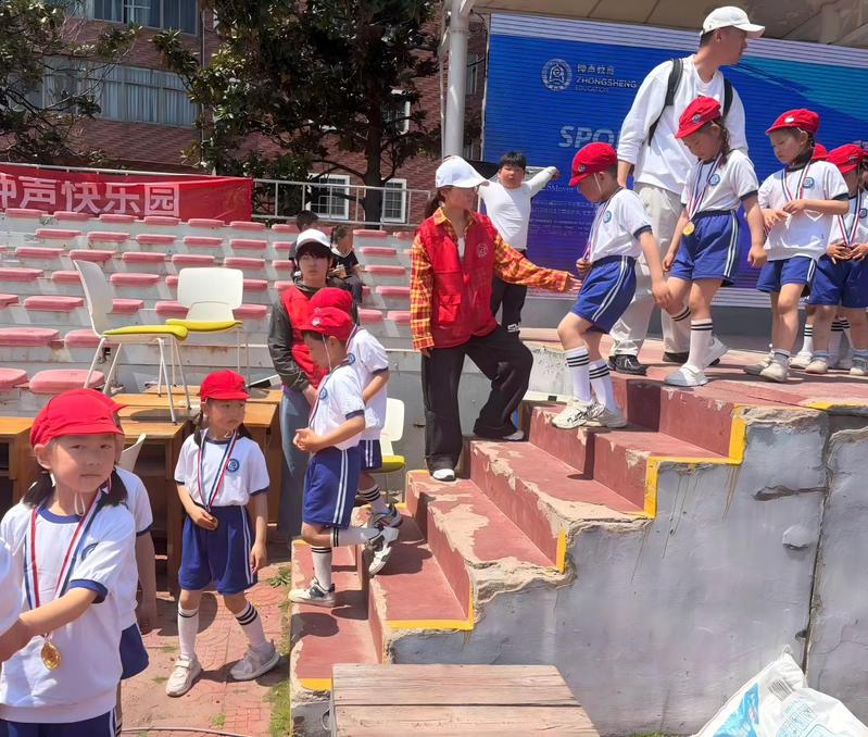 本次运动会期间,志愿者主动认领工作岗位,主要负责现场秩序管控与颁奖统筹管理两大核心工作。赛场之上,志愿者时刻坚守岗位,耐心引导小朋友们有序入场、参赛、退场,及时疏导人流,有效避免拥挤混乱,营造了安全整洁的活动环境。颁奖环节中,志愿者严格配合园方流程,细致整理奖牌、奖状等各类奖品,认真核对获奖名单与奖项信息,有条不紊地完成奖品递送及颁奖协助,保障每一场颁奖仪式顺利完成。面对活泼好动的小朋友们,志愿者秉持耐心、细心、爱心的服务原则,温柔引导、积极鼓励,陪伴孩子们勇敢参与各项体育项目。志愿者以严谨的态度和温暖的行动,将学前教育专业所学融入志愿服务,赢得了园方教师和现场家长的一致认可。