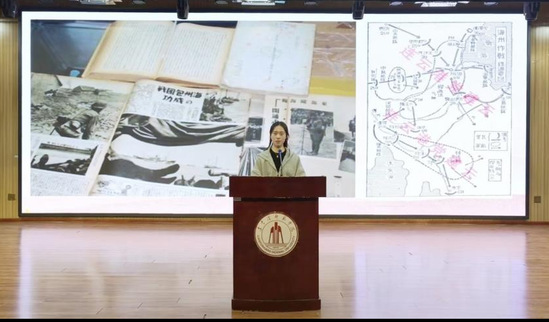 随后,智贤宣讲团成员围绕地方抗战历史开展专题宣讲。《铁血山海,壮志新程——连云港人民抗战史实专题宣讲》系统梳理了连云港在全民族抗战中的重要地位与历史贡献,突出展现了中国共产党在抗战中的中流砥柱作用。《山海港城,永不褪色的英烈红色记忆宣讲》以鲜活故事讲述万毅将军、“十八勇士”、符竹庭将军等英雄事迹,生动诠释了英烈忠诚报国、舍生忘死的崇高精神。